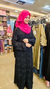 BOLD BLACK ABAAYA WITH BEAUTIFULL HAND WORK & STONE WORK TO MAKE YOURSELF ELEGENT AND CONFIDENT …..
