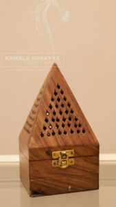 The exquisitely handcrafted pyramid model wooden sambrani holder adds a touch of traditional elegance to my meditation space